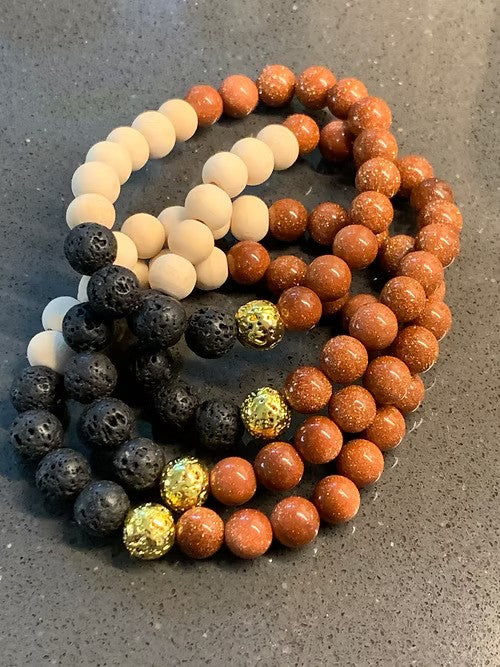 Lava, Electroplated Lava, Wood, Goldstone