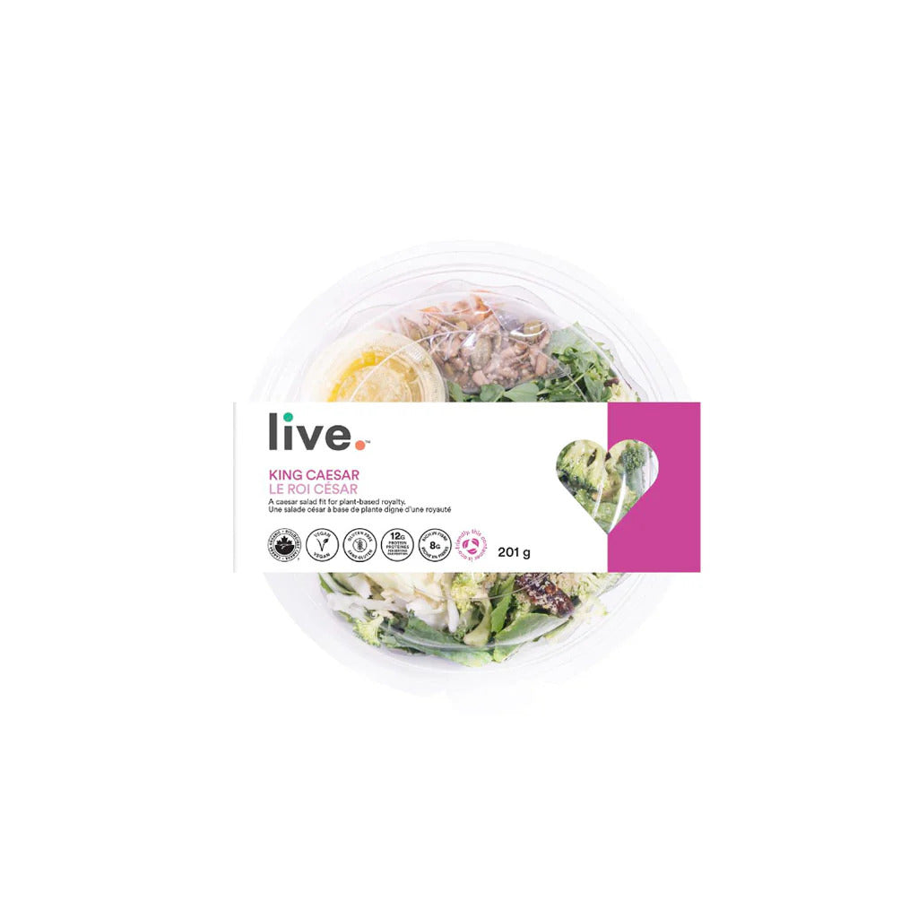 Our vegan version of a kale caesar, fit for plant-based royalty! Featuring hearty torn kale, coconut bacon, super seed blend and hemp parm, all smothered in our vegan, oh so creamy, Caesar dressing.